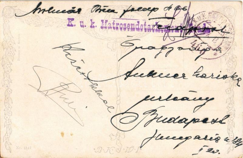 1918 Ernst ist das Leben. B.K.W.I. Nr. 1547. / monkey art postcard s: Otto Friedrich + "K.u.k. Matrosendetachement Grado" (EK)