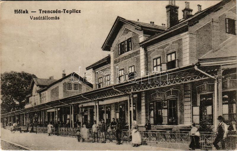 1918 Hőlak-Trencsénteplic, Hőlak, Trencséntepla, Trencsén-Tepla, Trencianske Teplá, Trencianska Teplá-Teplice; vasútállomás. MÁV levelezőlapárusítás 522. / railway station (Rb)