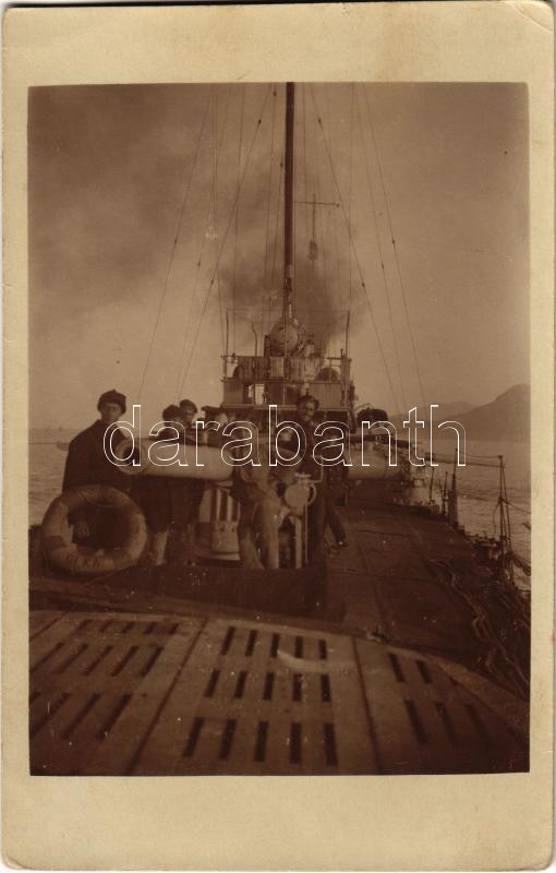 1918 Krk, SMS Lika osztrák-magyar Tátra-osztályú romboló matrózai a tat fegyverrel / K.u.K. Kriegsmarine / SMS Lika Austro-Hungarian Navy Tatra-class destroyer's mariners with the tat gun. photo (EK)