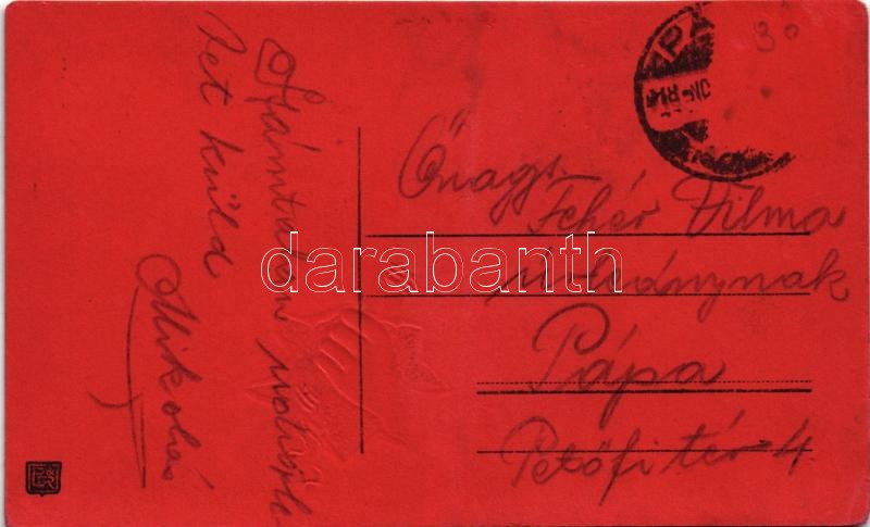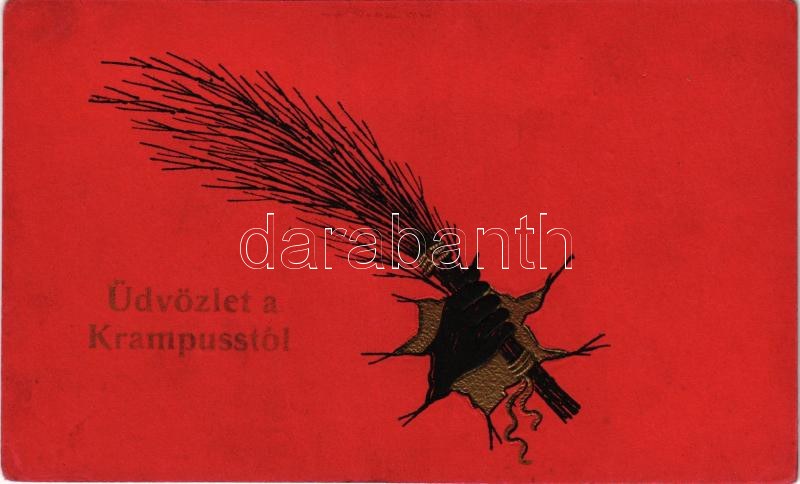 1918 Üdvözlet a Krampusstól! / Greetings from the Krampus with birch. Emb. litho (kopott sarkak / worn corners...