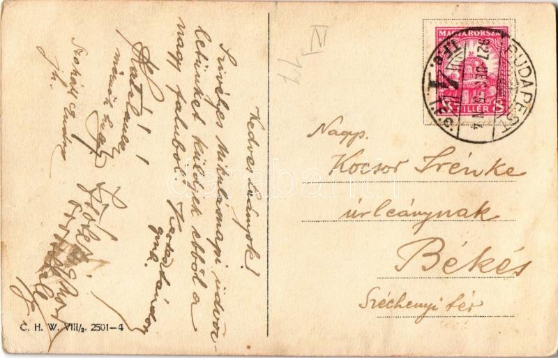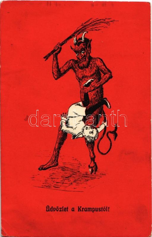 1927 Üdvözlet a Krampusztól! / Krampus with boy and birch. C. H. W. VIII/2. 2501-4. (EK)