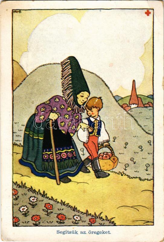 1928 Segítsük az öregeket. Magyar Ifjúsági Vöröskereszt Egyesület kiadása / Hungarian Red Cross propaganda art postcard (EK)