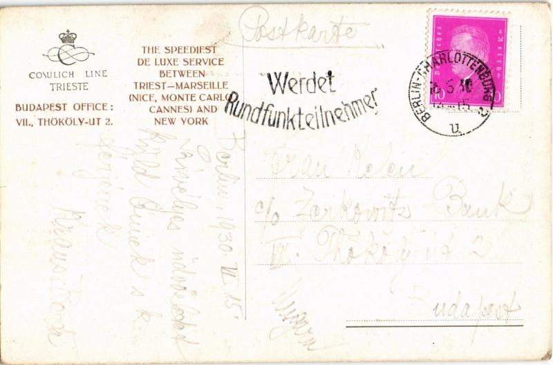 1930 Cosulich Line, M/S "Saturnia-Vulcania" / kivándorló hajó / emigration ship (EK)