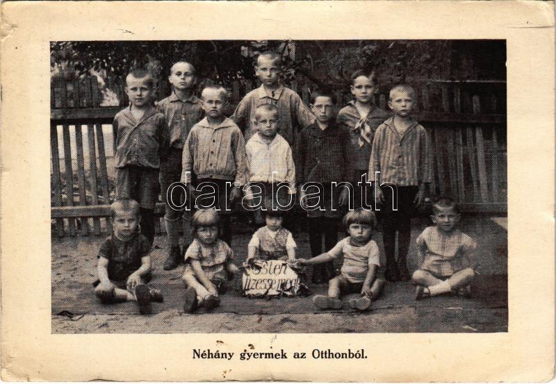 1931 Budapest IV. Újpest, Újpest-Megyer; Szent József és Szent Terézia Otthon szegény gyermekek részére adománygyűjtő lapja, néhány gyermek az otthonból, "Isten fizesse meg" (szakadások / tears)