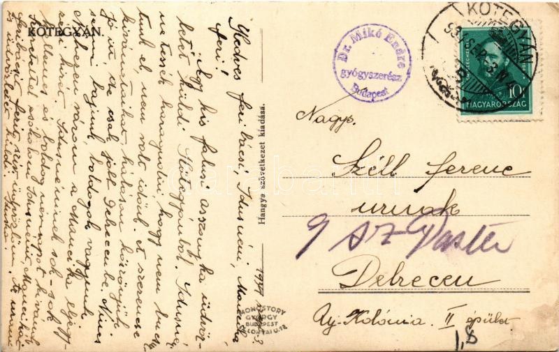 1934 Kötegyán (Békés), Református templom, Hangya szövetkezet üzlete és saját kiadása, automobil (fl)