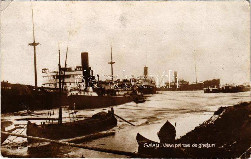 1935 Galati, Galatz; Vase prinse de gheturi / ships trapped in ice in winter (EK)