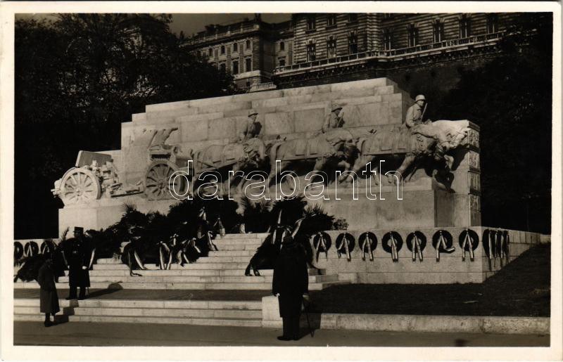 1937 Budapest I. A világháborúban elesett magyar tüzérek emlékműve (mai Dózsa György tér), koszorúk