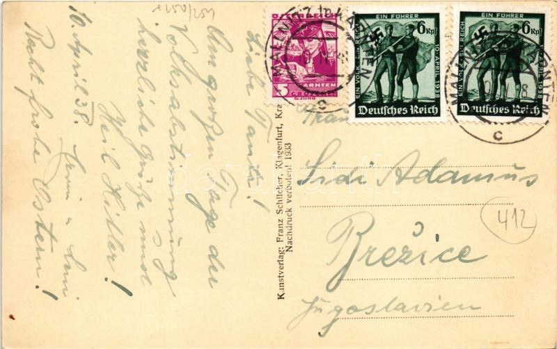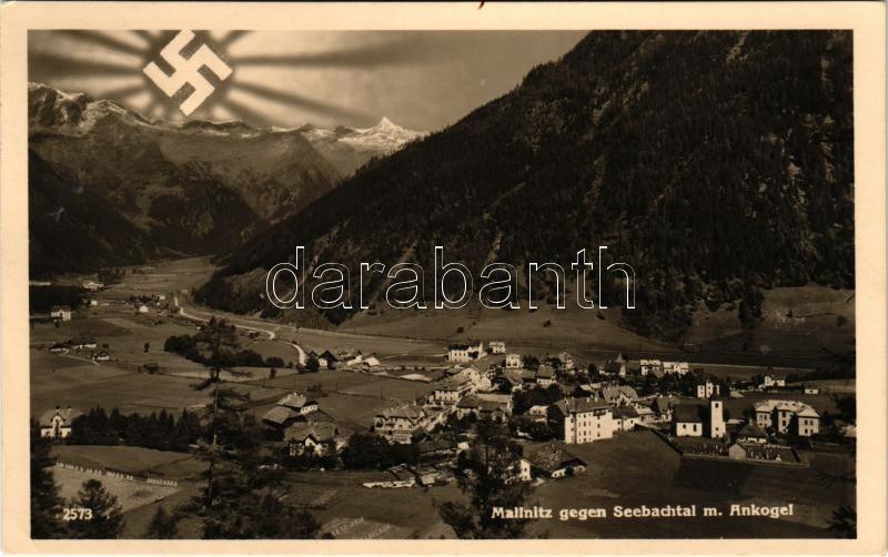 1938 Mallnitz (Kärnten), Mallnitz gegen Seebachtal m. Ankogel / general view, Nazi swastika montage in place of the Sun (EK)