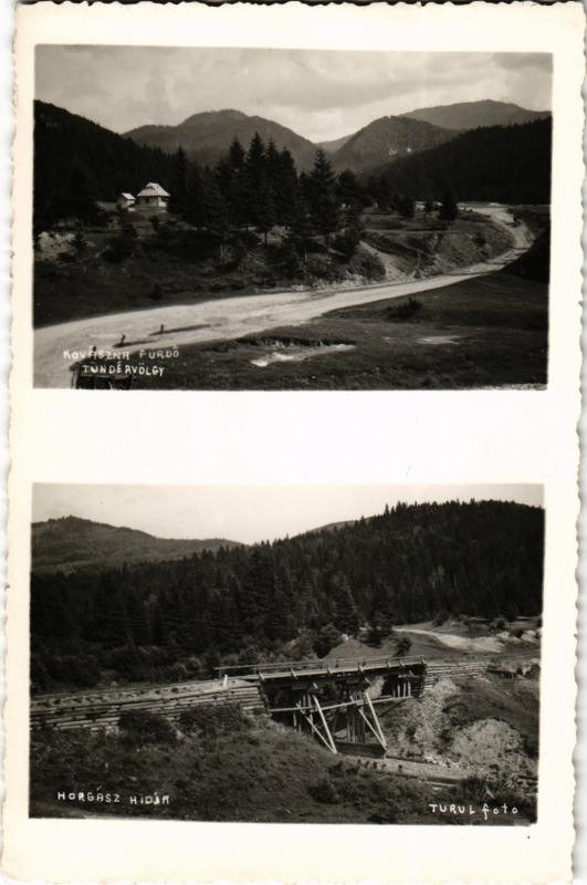 1942 Kovászna, Covasna; Tündérvölgy, Horgász hídja. Hadnagy Bazár / valley, bridge. Turul photo