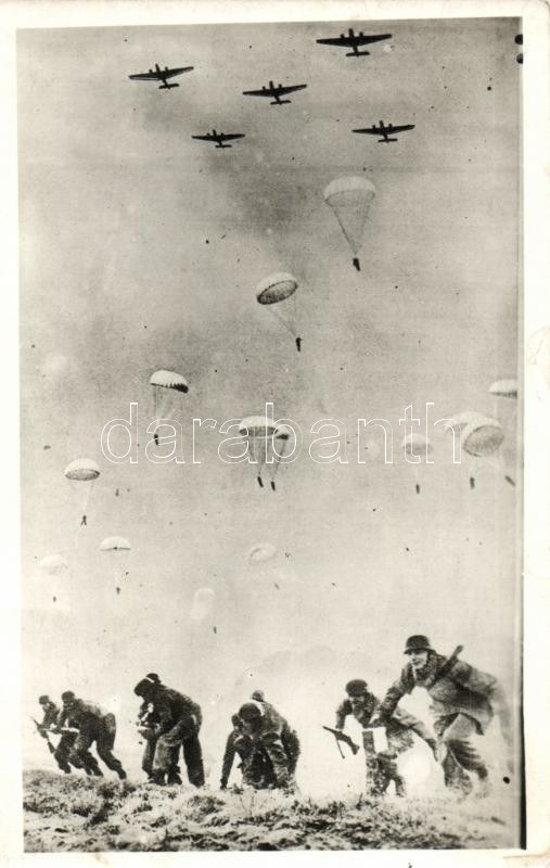 1944 WWII Hungarian parachutist soldiers, aircrafts photo (EK)