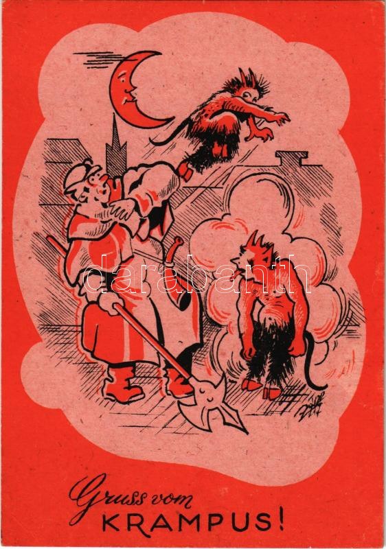 1947 Gruss vom Krampus with Saint Nicholas / Krampuszok