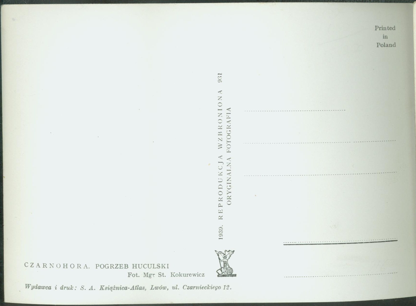 HUCULSZCZYZNA – Czarnohora. Pogrzeb huculski Fot. St. Kokurewicz, 931, Wyd. Książnica-Atlas, Lwów, fot. czb., 1939