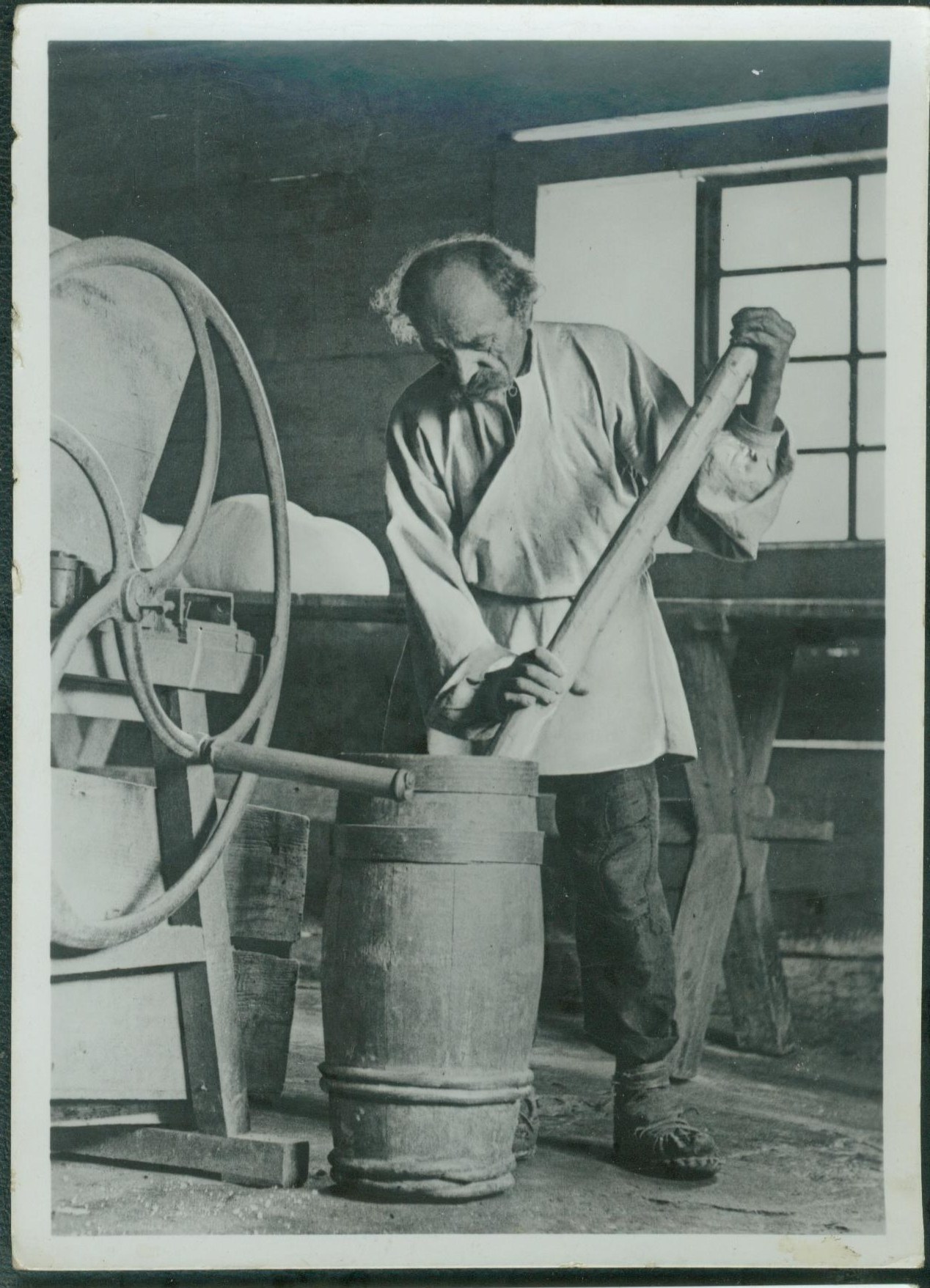 HUCULSZCZYZNA – Pasterstwo w Karpatach Wsch., Ubijanie Bryndzy w beczki, Fot. Tad. Porębski, 1855, Wyd. Książnica-Atlas, Lwów, fot. czb., 1939