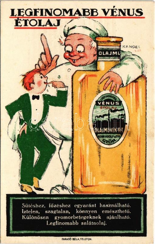 A legfinomabb Vénus étolaj. Kohn Adolf és Társa Olajművek rt. kiadása. Esperanto reklám a hátoldalon - Faragó Béla / Hungarian cooking oil advertisement, litho s: Kandel (EK)