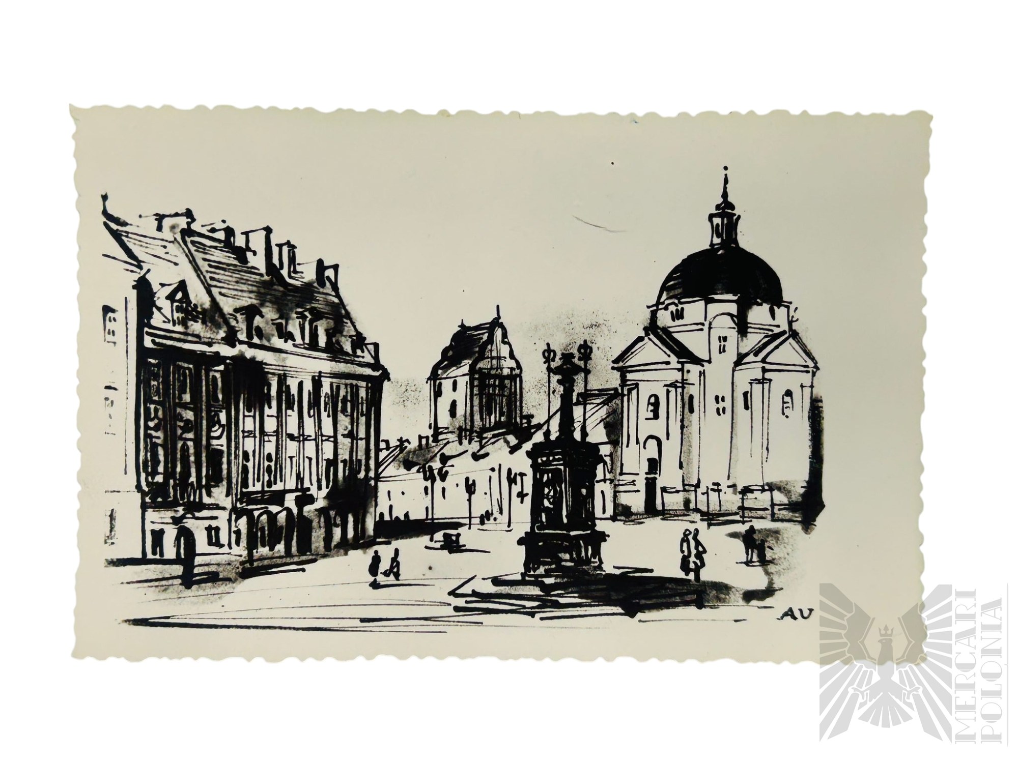 Antoni Uniechowski (1903-1976) - Zestaw Pocztówek z Reprodukcjami Grafik: Zabytki Warszawy (PRL)