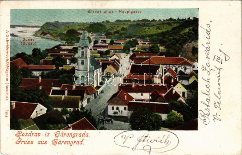 Atya, Sarengrad; Fő utca, Duna / Glavna ulica / Hauptgasse / main street, Danube. A. Schwidernoch 8513. (EK...