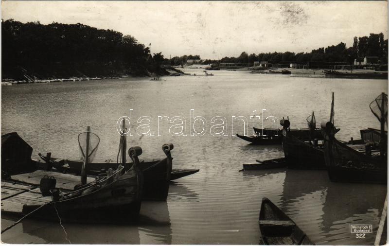 Baja, Kamarás Duna, halász csónakok. Weinstock E. 322. 1942-es engedélyezési pecsét a hátoldalon (fl...