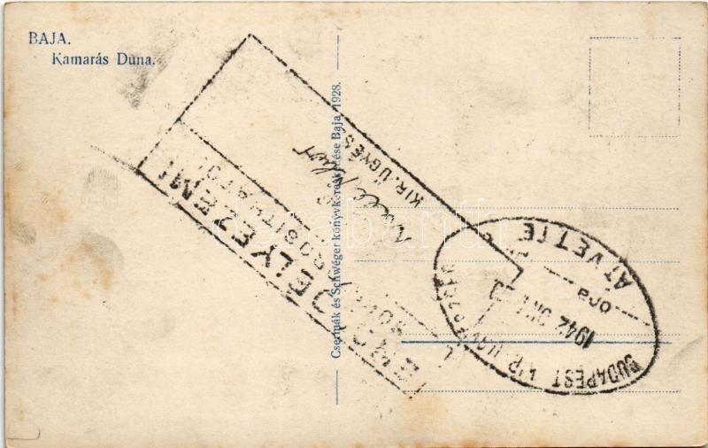 Baja, Kamarás Duna, halász csónakok. Weinstock E. 322. 1942-es engedélyezési pecsét a hátoldalon (fl)