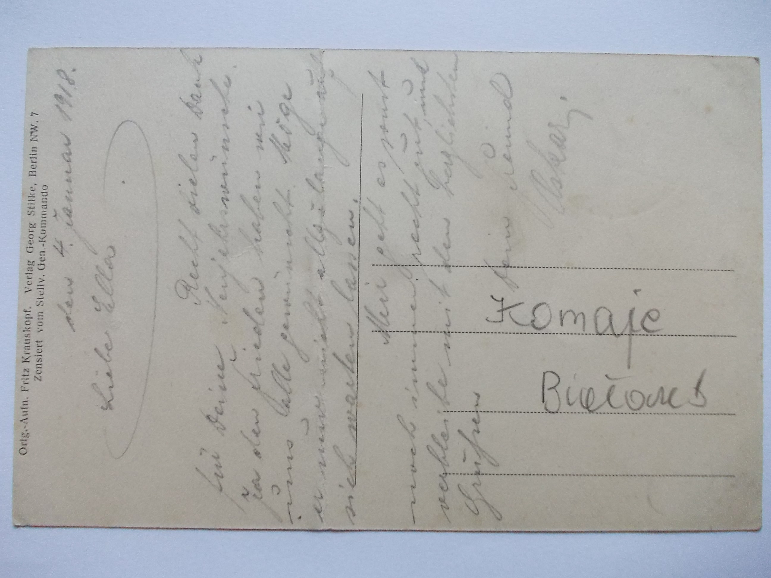 Przedmiotem licytacji jest oryginalna pocztówka. Stan zachowania oraz obieg widoczny na fotografiach, złamana