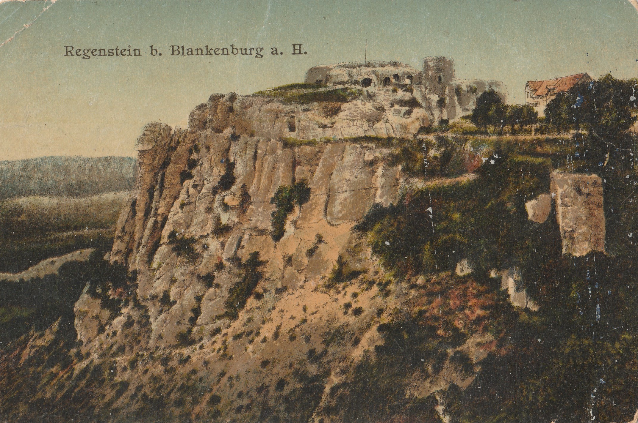 BLANKENBURG. Regenstein b. Blankenburg a. H., wyd. ok. 1899; kolor., stan db, zagięty lewy róg na górze, drobne uszkodzenia, z obiegiem.
