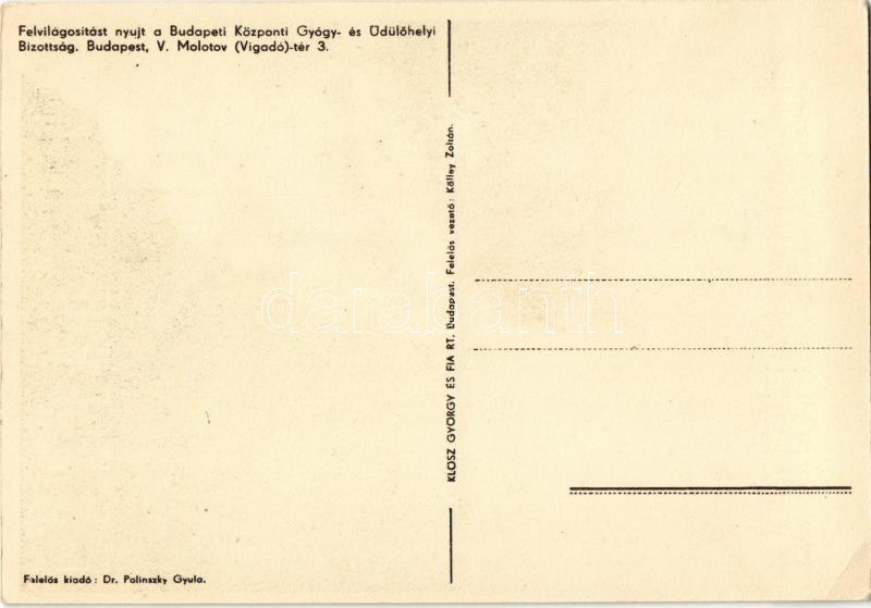 Budapest forrásvizei gyógyítanak. Klösz György és fia rt. kiadása / Hungarian touristic advertisement s: Szilas Horváth