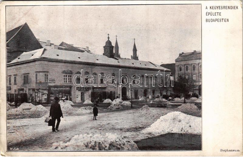 Budapest V. Városház tér télen, A kegyesrendiek épülete, Világ Panoráma, Mozgó mozi, Barhó Ferenc üzlete (EK...