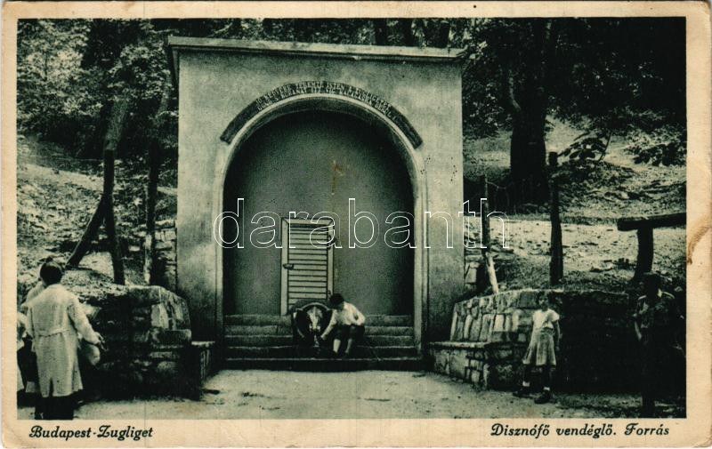 Budapest XII. Zugliget, Disznófő forrás "Jó kedvébe teremté Isten a Zugligetet, gond s búbánat itt víg kacagásra derül!...