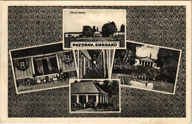 Büdöskő-fürdő, Smrdáky Kúpele, Szmrdák (Szenice, Senica); Radioaktívne sirnaté a solné liecivé kúpele pri Senici na Slovensku nad Myjavou, teresa, Hlavná budova, tanecní sal / Radioaktív kénes és sós gyógyfürdő Miava mellett, táncterem belső / Radioactive sulfur and salt spa, bath, villa, dancing hall interior. Art Nouveau (EK)