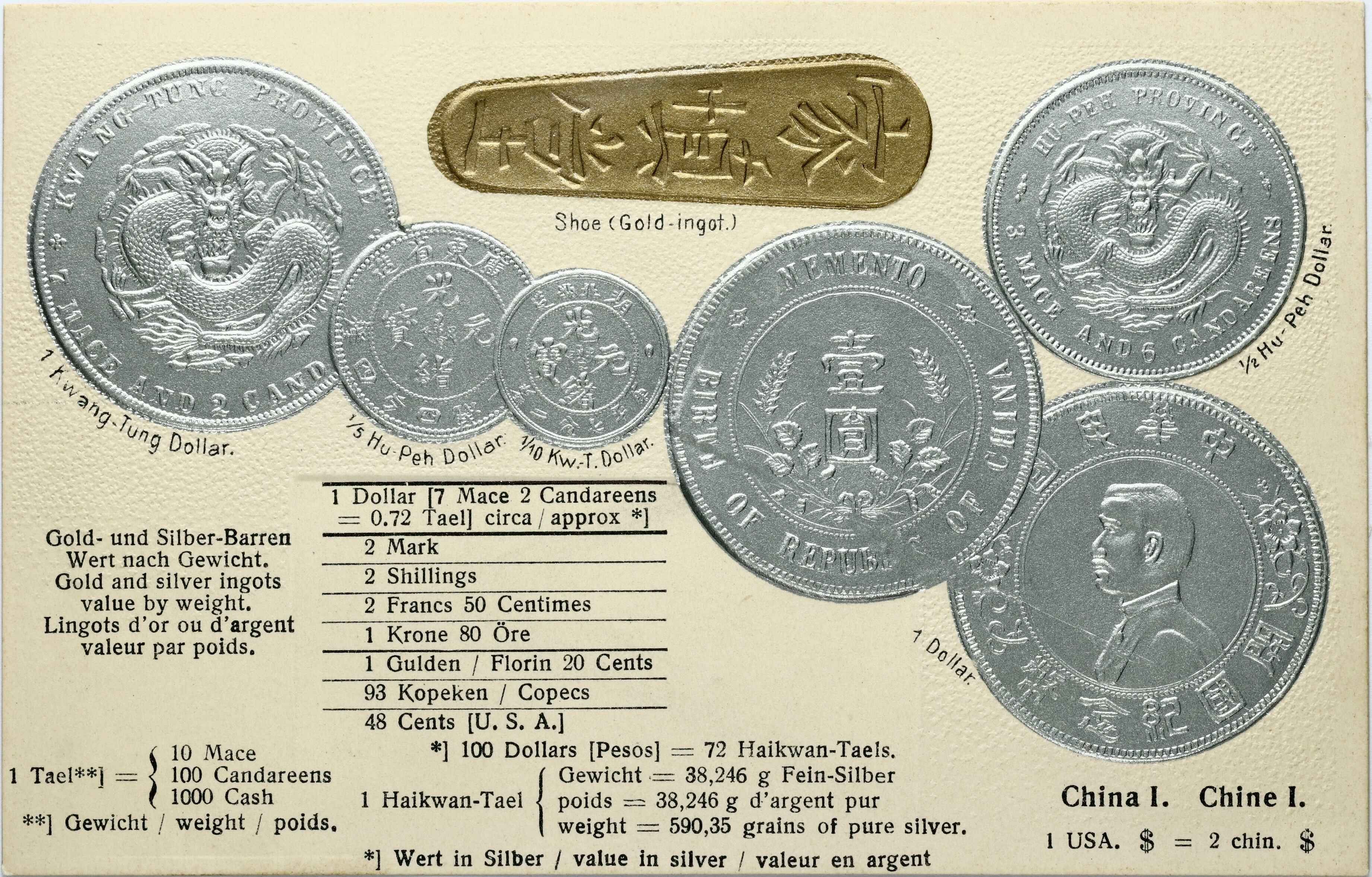 China Post Card ND (1930) Examples of Coins. Walter Erhard Altensteig (W�rtt.) Printed in Germany 1930. Paper. 91x143mm