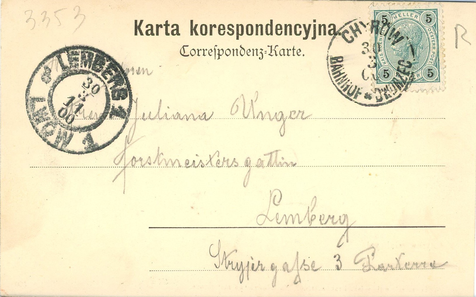 Wydawnictwo Salonu Malarzy Polskich, Kraków. kartka zapisana, dat. 30.3.1900 r. Stan bardzo dobry.