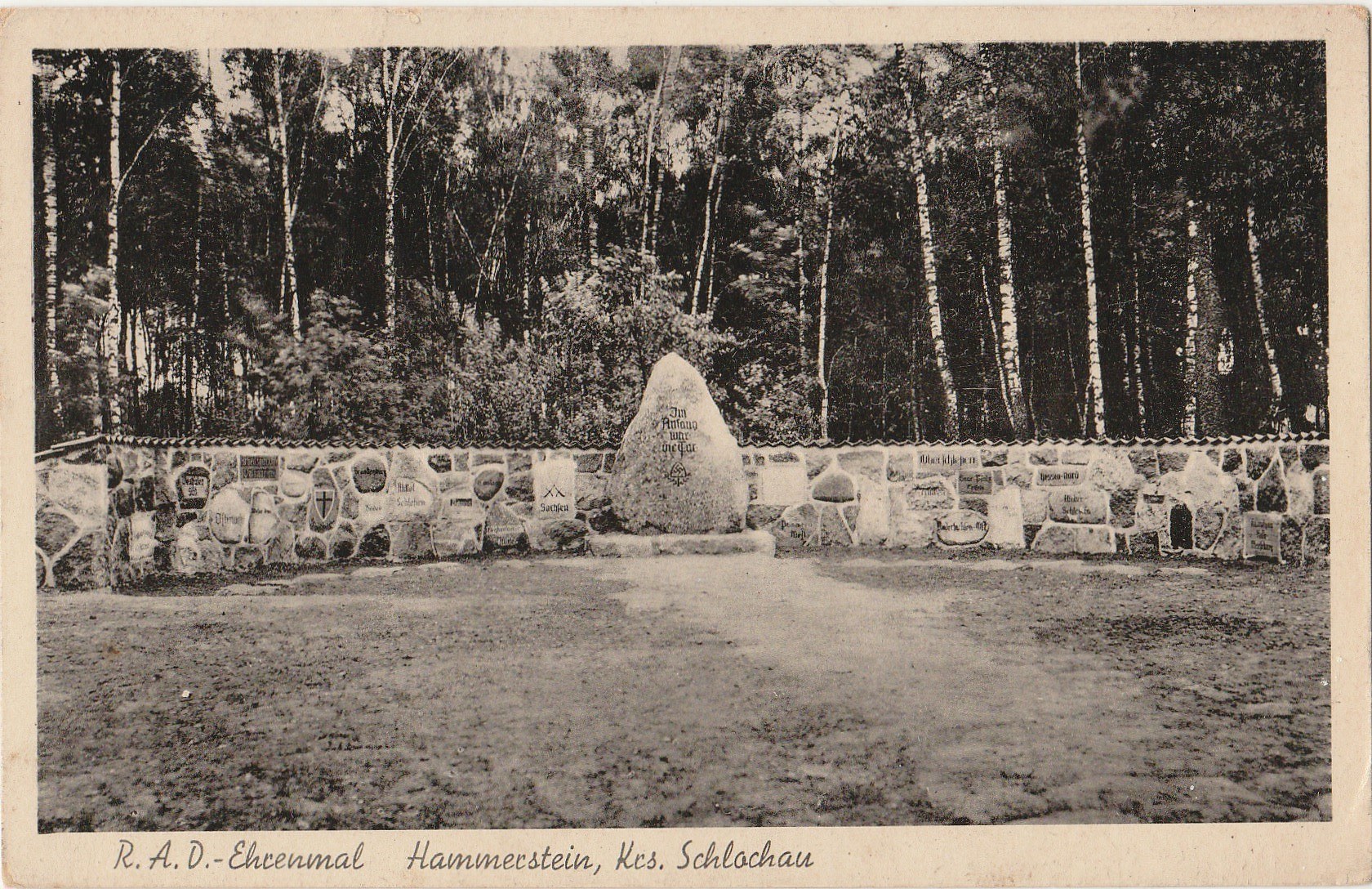 CZARNE. R.A.D.-Ehrenmal, Hammerstein, Krs. Schlochau, wyd. Rudolf Streich, Photograph, Hammerstein, ok. 1941; cz.-b., stan bdb, z obiegiem.