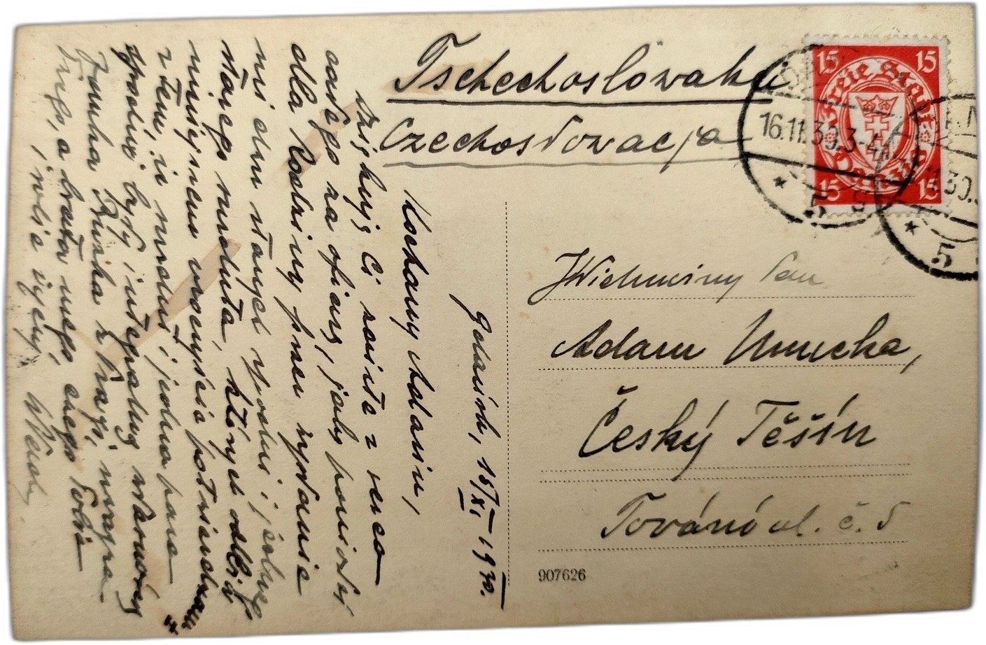 Pocztówka - Danzig - Gdańsk ulica Mariacka, Znaczek Wolne Miasto Gdańsk, 1930 rok