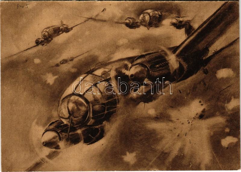 Deutsche Kampfflugzeuge gehen in wildem Flakfeuer zum Angriff über. Der Adler die grosse Luftwaffen-Illustrierte / German WWII military aircraft / Német második világháborús katonai repülőgép s: R. Hess (EK)