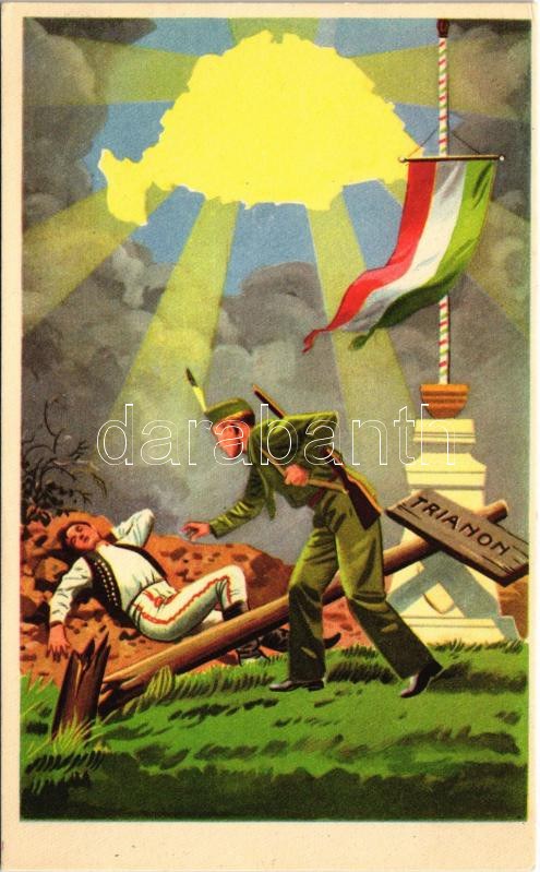 Ébreszt a magyar jövő. Kiadja az Ereklyés Országzászló Nagybizottsága / Hungarian irredenta propaganda art postcard, Treaty of Trianon