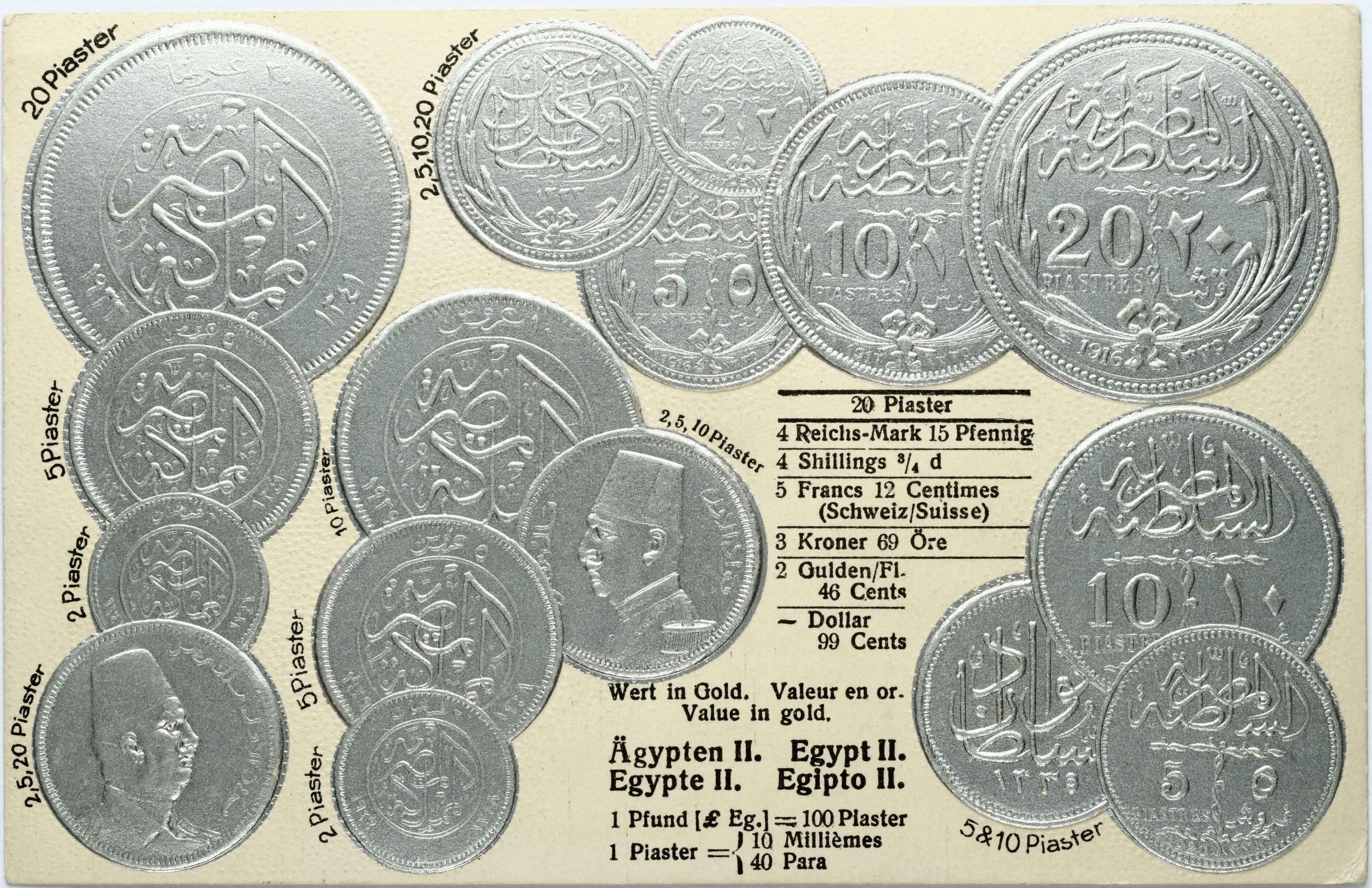Egypt Post Card ND (1932) Examples of Coins. Walter Erhard Wildberg (W�rtt.). Printed in Germany. Paper. 93x145m