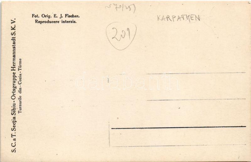 Erdélyi-Kárpátok, Siebenbürgische Karpathen; Turnurile din Cozia. S.C.a.T. Sectia Sibiu, Ortsgruppe Hermannstadt S.K.V...