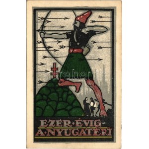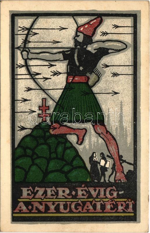 Ezer évig a Nyugatért! Kiadja Magyarország Területi Épségének Védelmi Ligája, Besskó Károly Grafikai Műintézete / Hungarian irredenta propaganda, Trianon s: Wenczel Márton