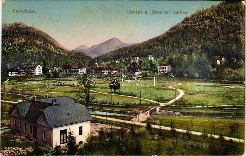 Fenyőháza, Lubochna; Látkép a Zapolya parkkal / park (kopott sarkak / worn corners)