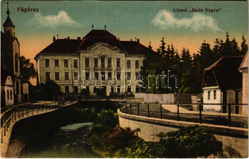 Fogaras, Fagaras; Liceul "Radu Negru" / gimnázium / grammar school (ragasztónyom / glue marks)