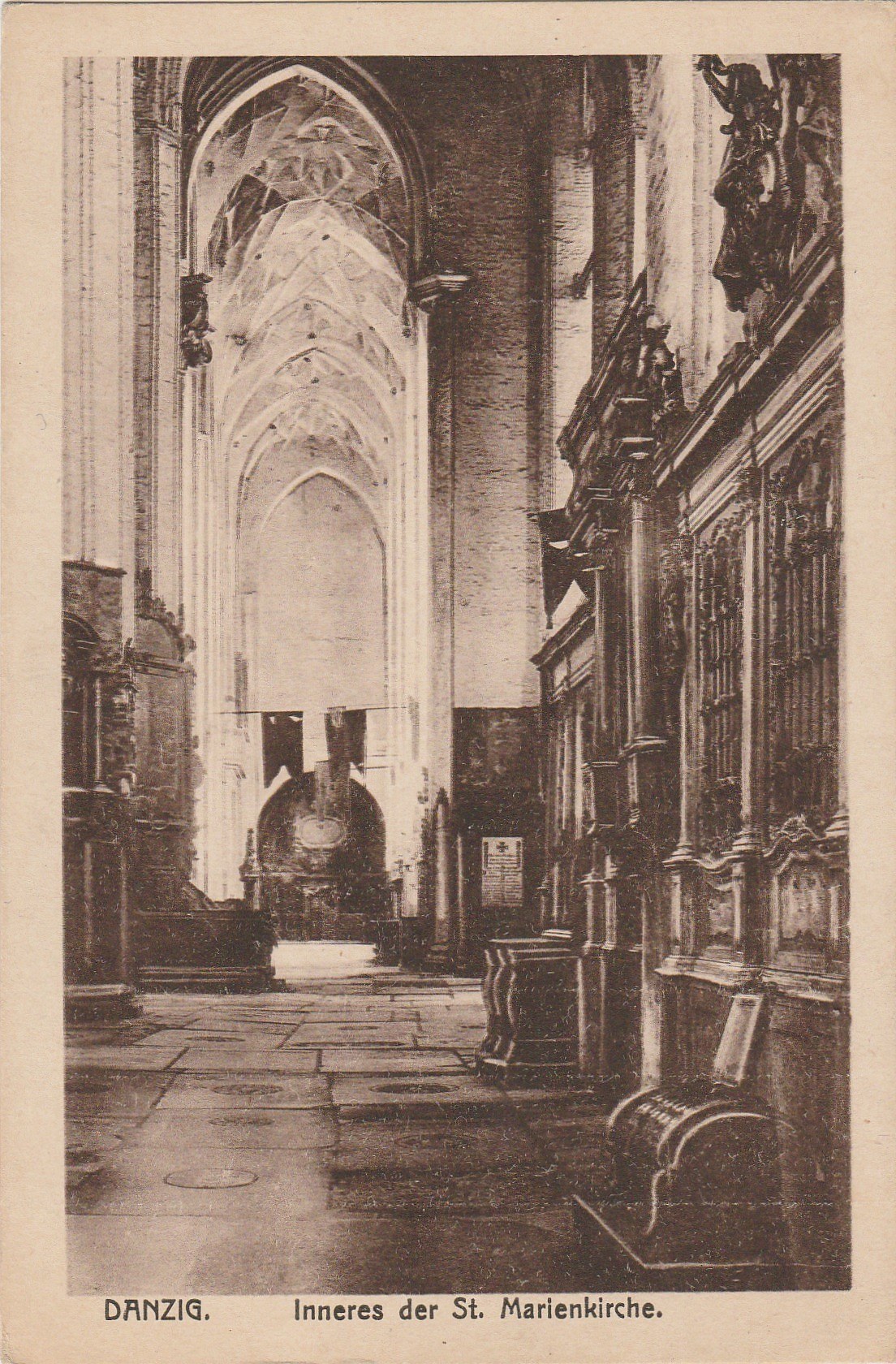 GDAŃSK. Danzig. Inneres der St. Marienkirche, wyd. Clara Bernthal, Danzig, ok. 1925; cz.-b., stan db, bez obiegu.