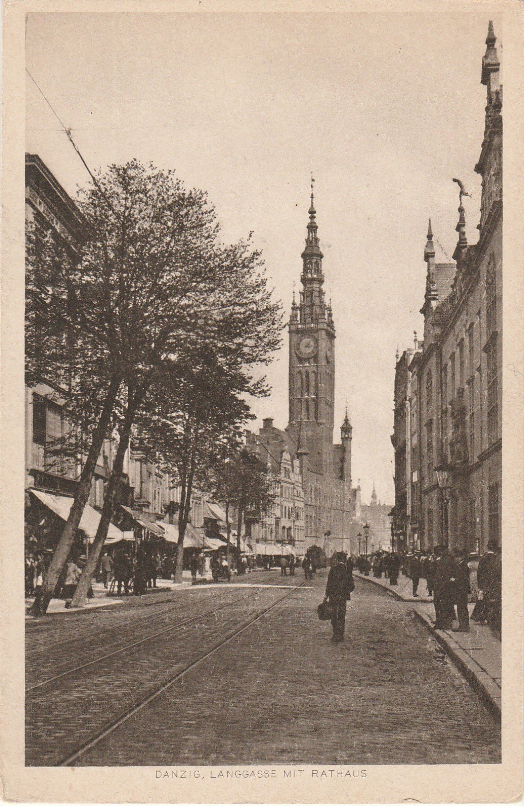 GDAŃSK. Danzig, Langgasse mit Rathaus, wyd. W. F. Burau, Danzig, ok 1920; cz.-b