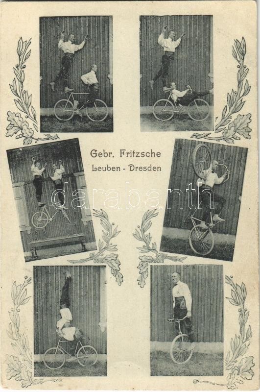 Gebr. Fritzsche Leuben-Dresden / Német cirkuszi kerékpáros akrobaták / German circus acrobats with bicycles. Art Nouveau (EK)