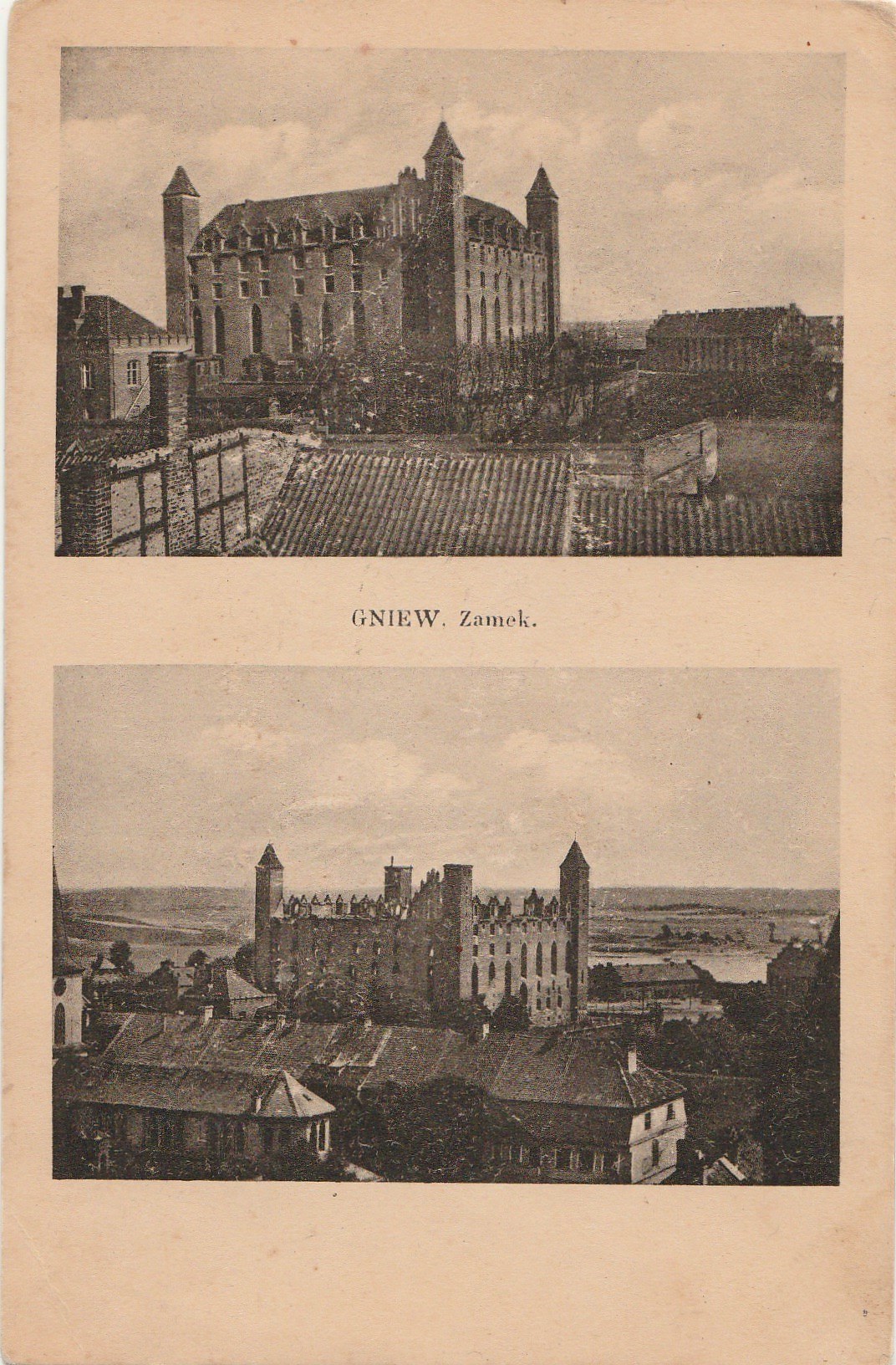 GNIEW. Gniew. Zamek, wyd. G. Rogowski, ok. 1921; cz.-b., stan db, drobne zabrudzenia, bez obiegu.