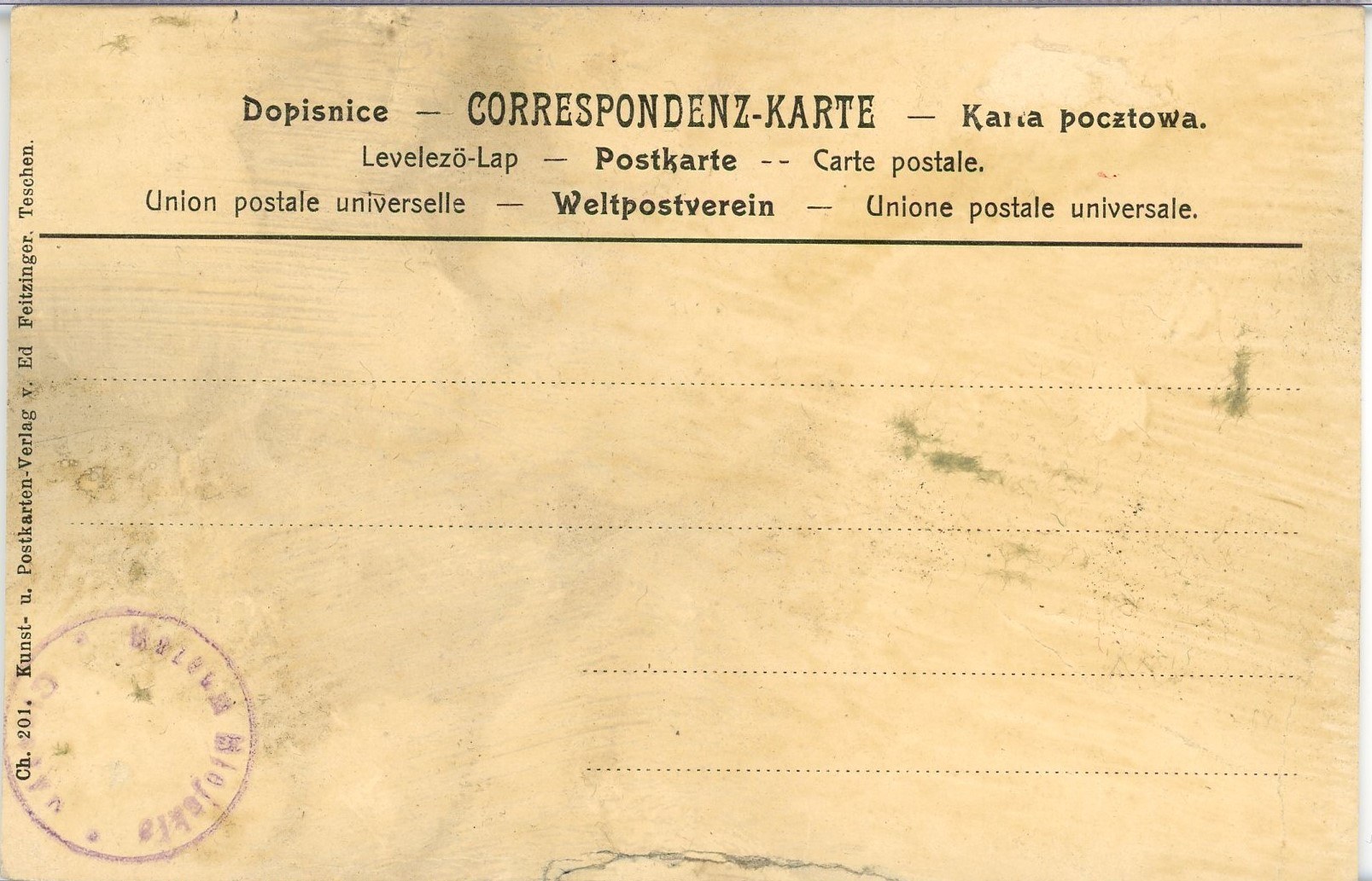 Wyd. Ed. Feizinger, Cieszyn. Kartka bez obiegu, ślady podklejenia, ogólny stan dobry.