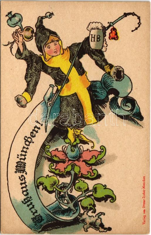 Gruß aus München! HB / German beer advertisement. Verlag v. Ottmar Zieher litho (kis szakadás / small tear)