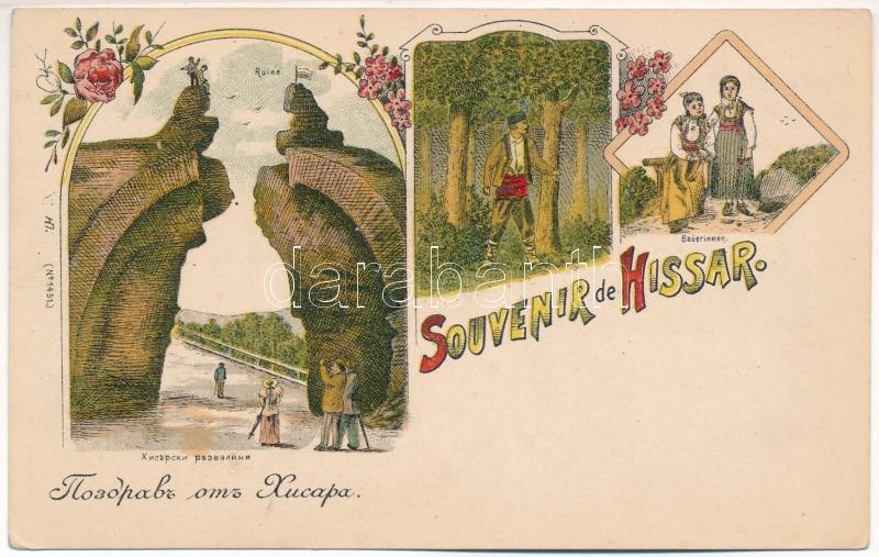 Hisarya, Hissar, Chisar, Toplitsa; Ruine, Bäuerinnen / gate ruin, peasants, folklore. HT. No. 1451. Art Nouveau, floral, litho