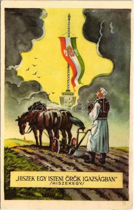 Hiszek egy isteni örök igazságban. Hiszekegy. Kiadja az Ereklyés Országzászló Nagybizottsága / Hungarian irredenta propaganda, Hungarian flag, Treaty of Trianon s: Lamoss (EK)