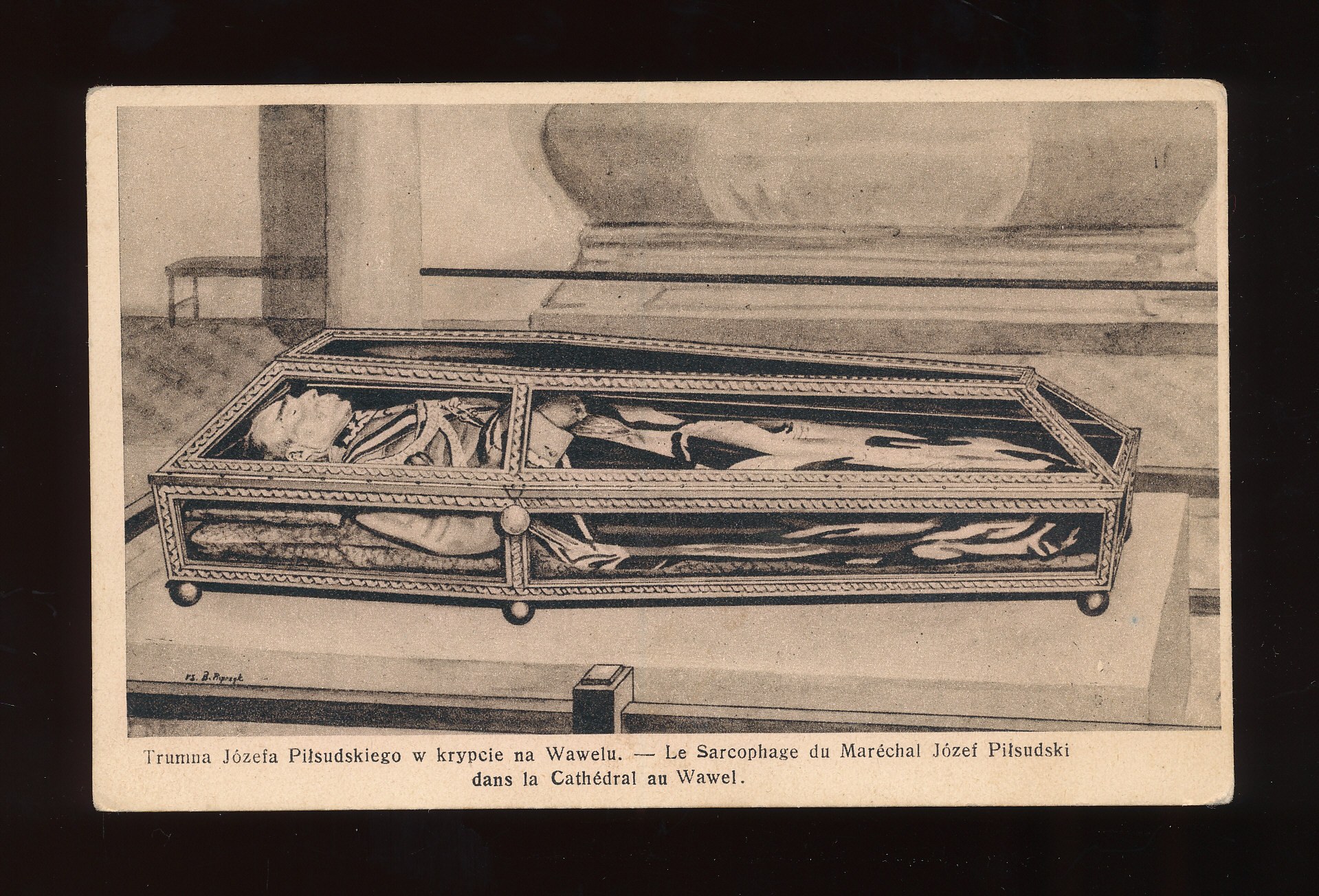 II Rp. „Trumna Józefa Piłsudskiego w krypcie na Wawelu”. Wydawca: Polonia, Kraków. Wym. 14 x 8,9 cm