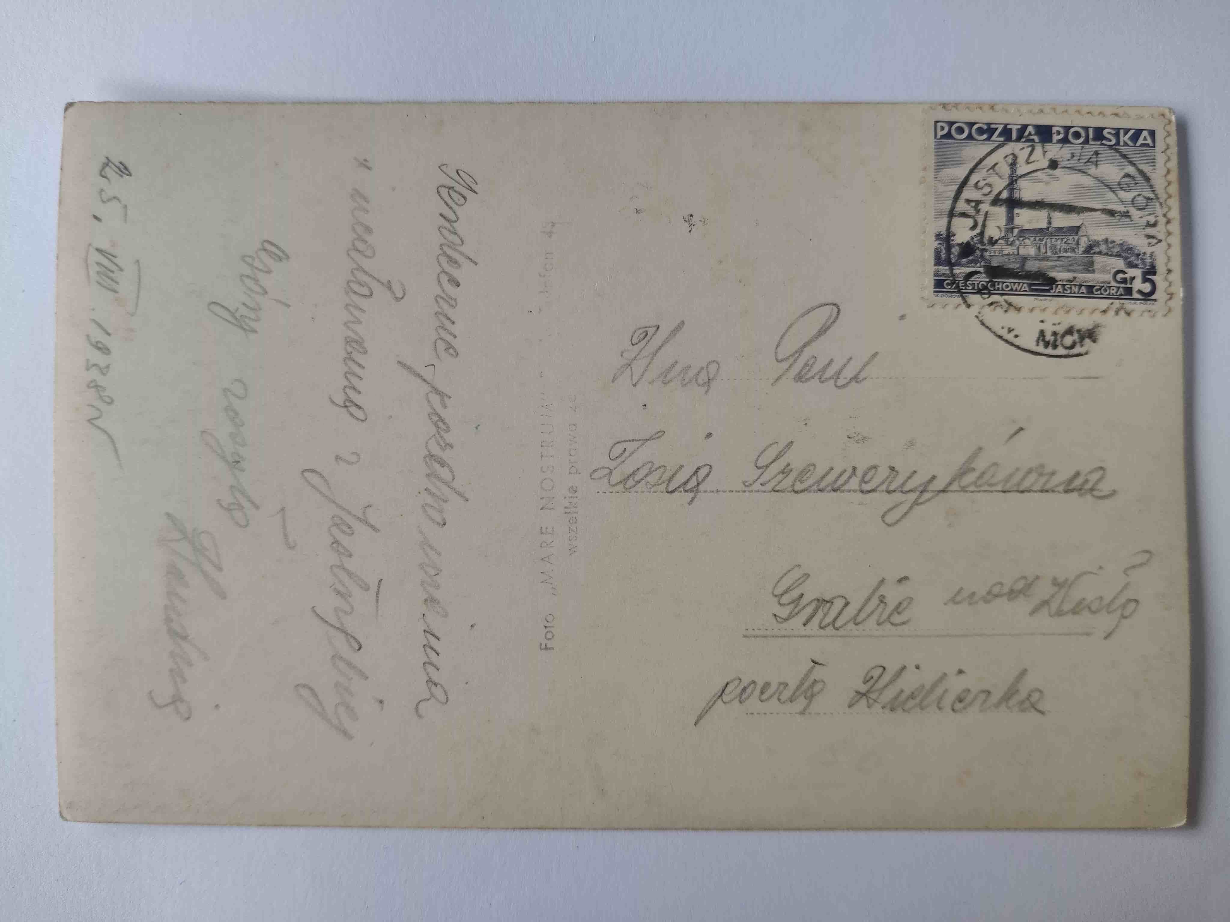 Przedmiotem licytacji jest oryginalna pocztówka. Stan zachowania oraz obieg widoczny na fotografiach, brak wad ukrytych.