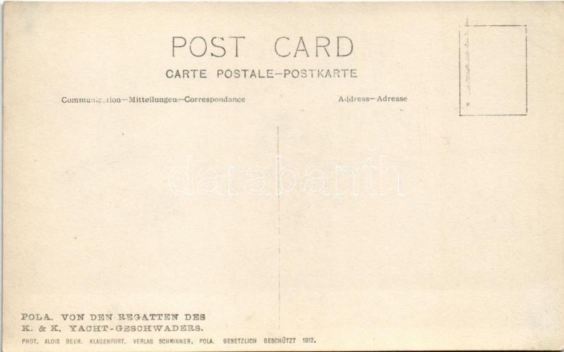 K.u.k. Kriegsmarine Pola von den Regatten des K. & k. Yacht Geschwaders. Phot. A. Beer, F.W. Schrinner Pola 1912.